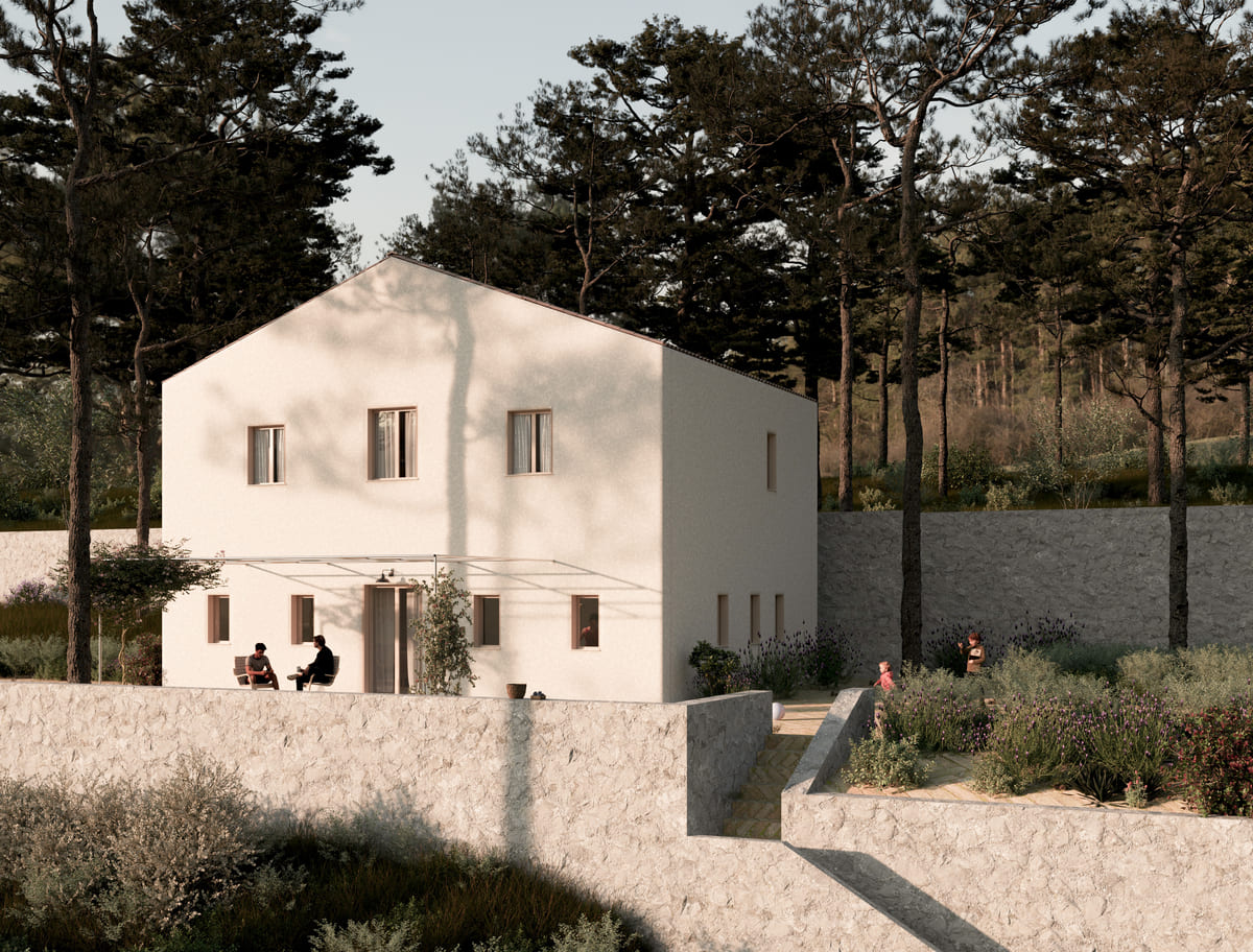 Immersa nella quiete campestre, tra pini marittimi e una leggera brezza collinare, questa casa dell’entroterra presenta un’architettura semplice e una distribuzione degli spazi efficace, creando ambienti ampi e luminosi.