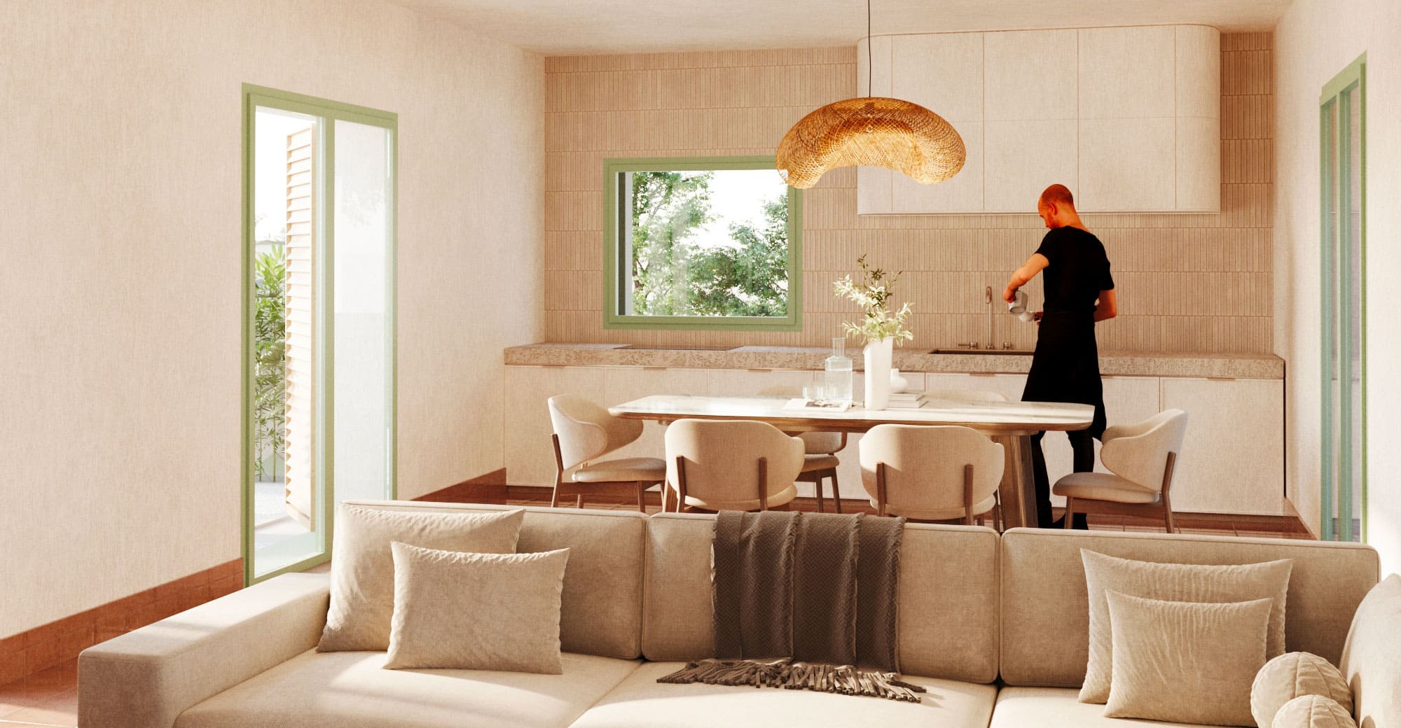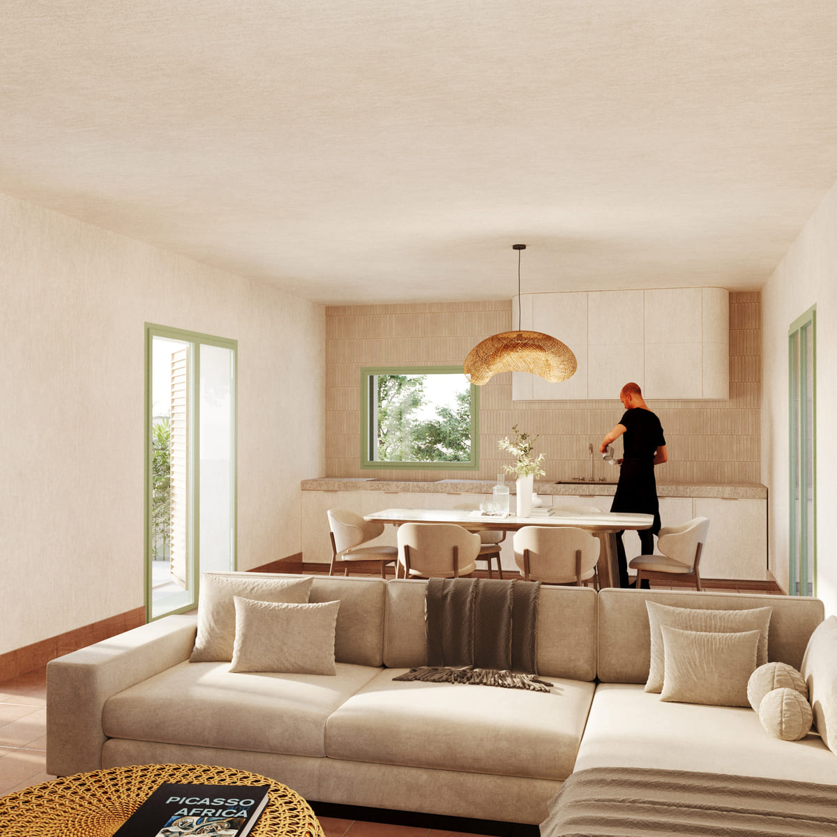 La casa mediterranea è concepita per le aree costiere che si affacciano sul mar Mediterraneo, mirando a stabilire un forte legame con l’ambiente circostante attraverso l’utilizzo di elementi architettonici radicati nella tradizione abitativa mediterranea.